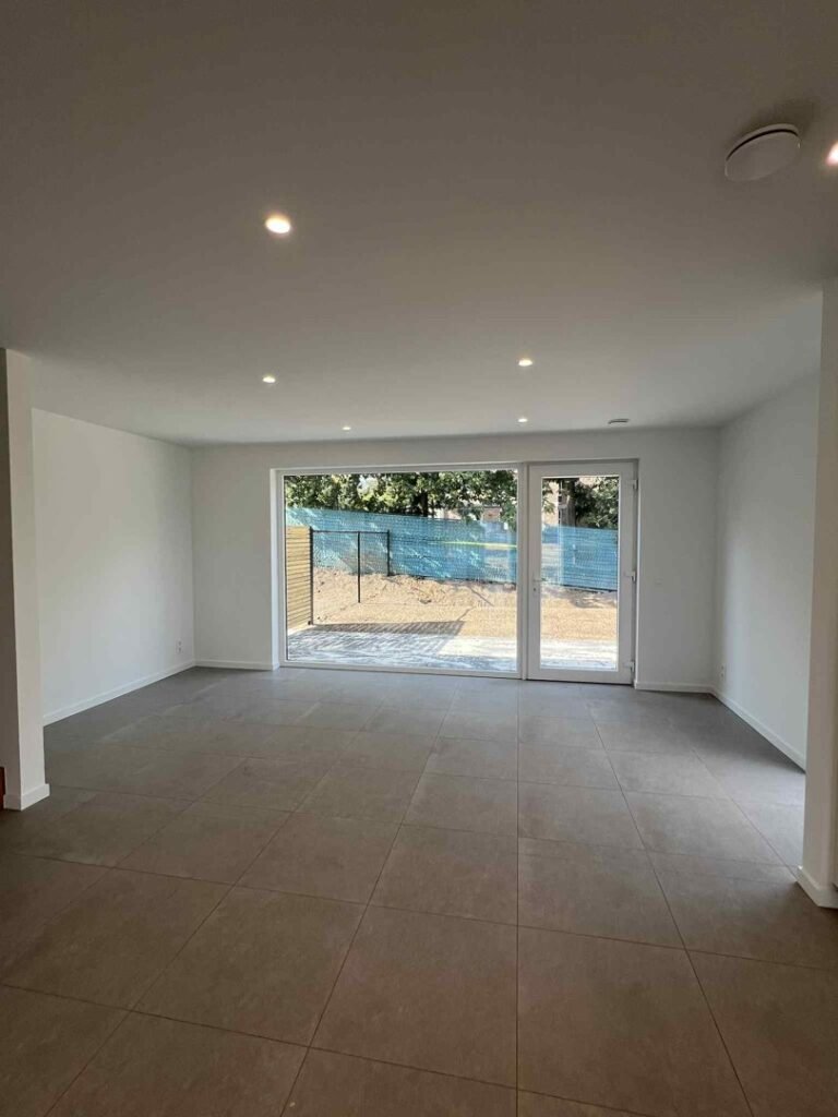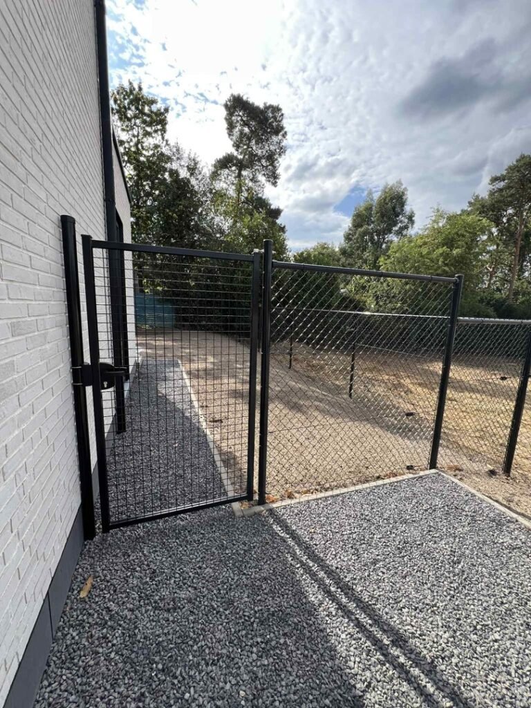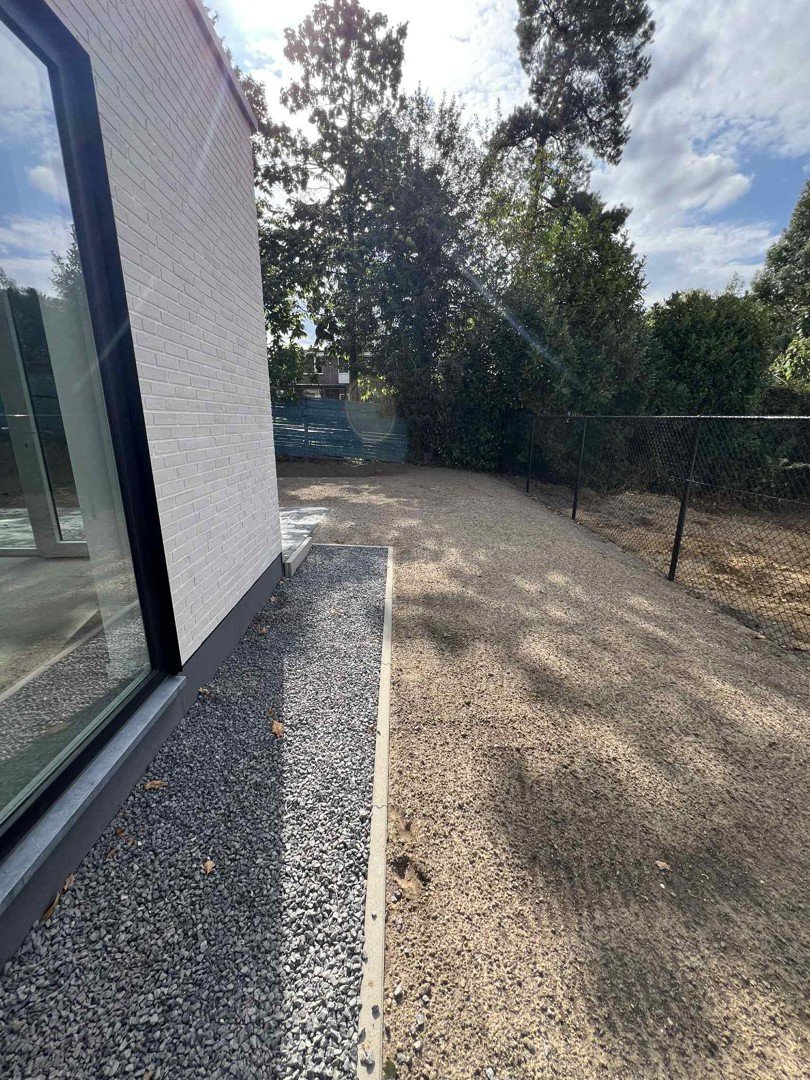 De grote ramen in de leefruimte zorgen voor een mooie connectie met de volledig omheinde en aangelegde tuin, voorzien van een zonnig terras, een ingezaaid (nog uit te schieten grasveld) en wadi om het overtollige regenwater in de grond te laten intrekken. Hier kan u in alle rust genieten.